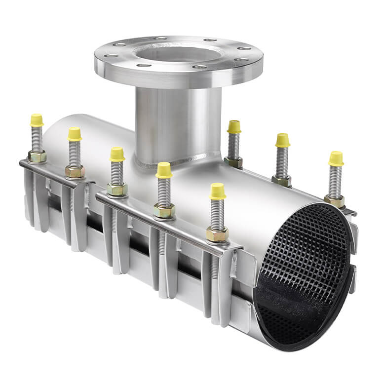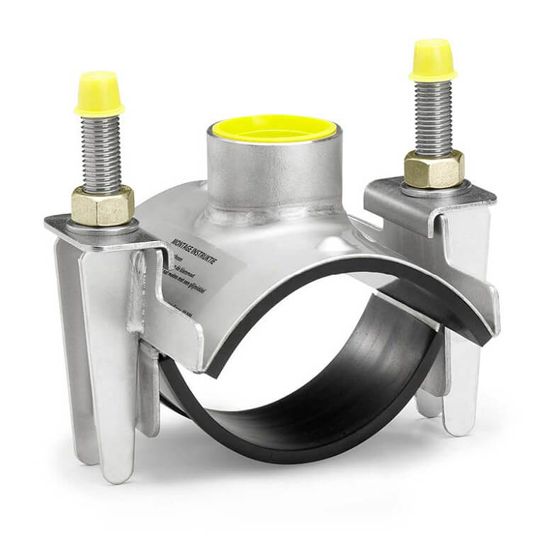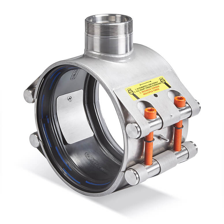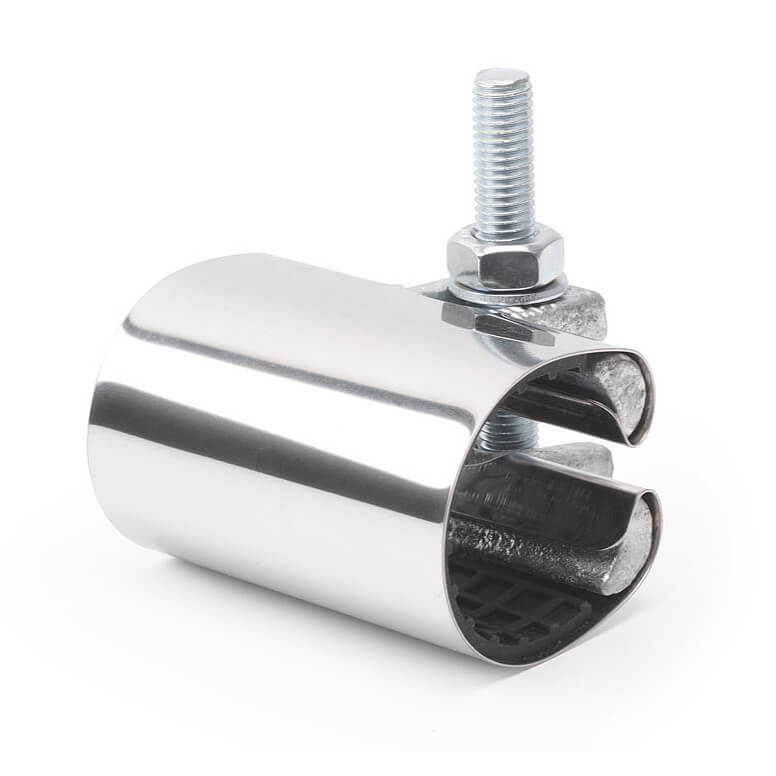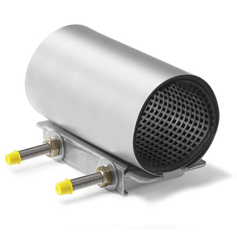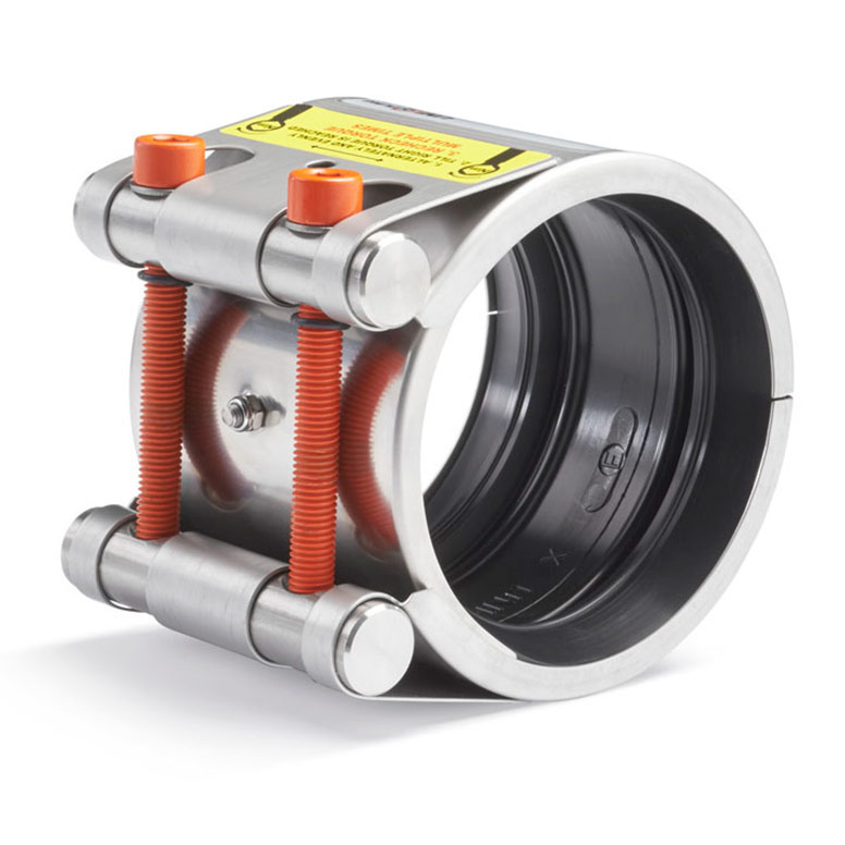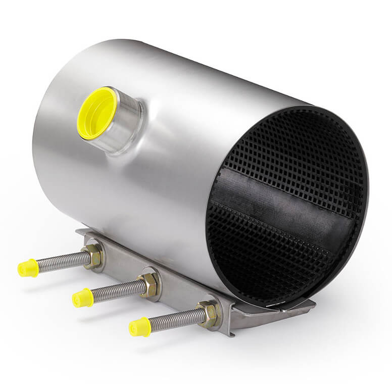 PEWOCLAMP ERS Ersatzteil A Reparaturschelle mit vier Verschlussschrauben pro Verschluss, Druckstufe: PN 16-2 Breite: 400 mm Ø min./max.: 91-98 Edelstahlqualität: Verschluss und Band A4 (1.4571) max. 300 mm Beschädigungslänge Waffelstruktur Dichtung in Viton Temperaturbereich: -10°C bis +200°C Ursprungsland: NL Zolltarifnr.: 73072980